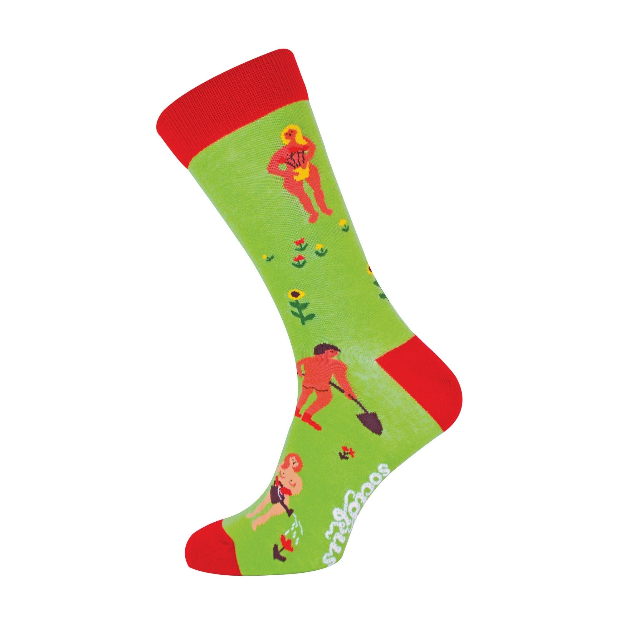 They come in 2 Adult sizes: 4-8 UK, 9-12 UK and have 6 different Gardening patterns available which are: Dig These, Gnomeland, Naked Gardening, Cheeky Gnomes, Grown Your Own & You Wood Love These. All with bright and funky designs.