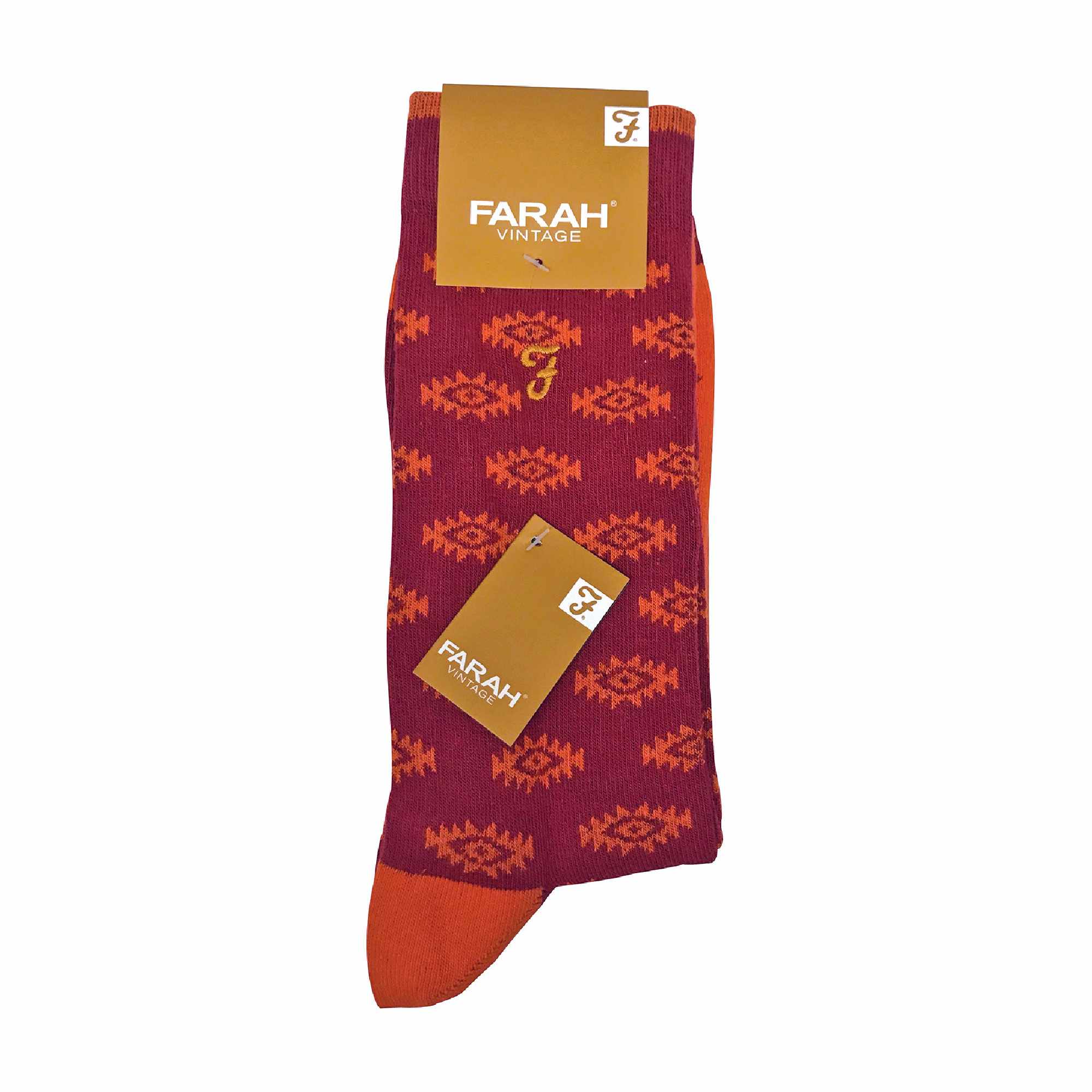 Your socks can say a lot about your character, retro patterned socks like these Farah vintage jacquard knit socks will make some bold statements and are great to wear as a bright pair of dress socks.