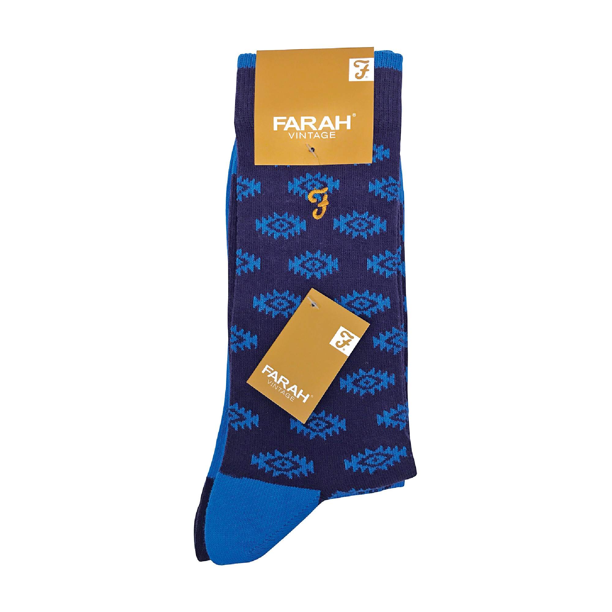 These socks are cotton rich, with a cotton composition of 75% meaning they are soft against the skin. They have the iconic ‘F’ for Farah embroidered in gold on the socks. All the styles have an a retro pattern on them. Anyone who is looking for a pair of comfortable and bold socks for their suit will find these socks are perfect for the job.