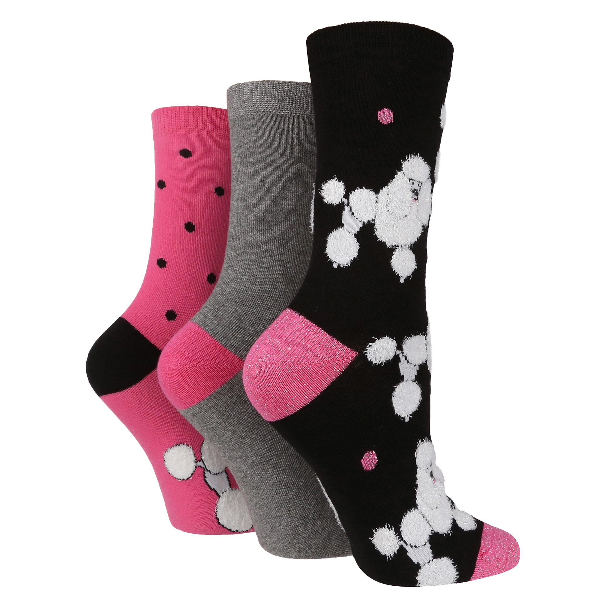 3 Pack Ladies Poodle Dog Novelty Cotton Socks