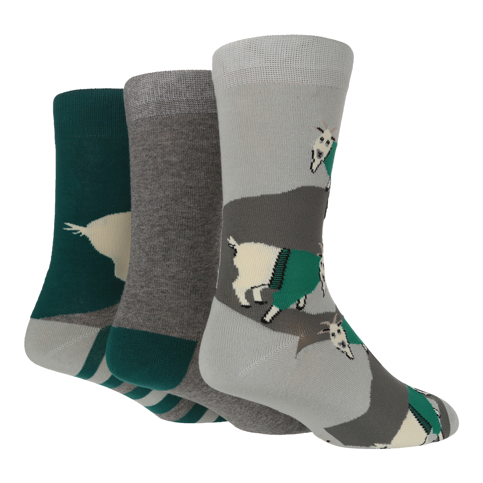 3 Pack Mens Novelty Mountain Goat Cotton Socks