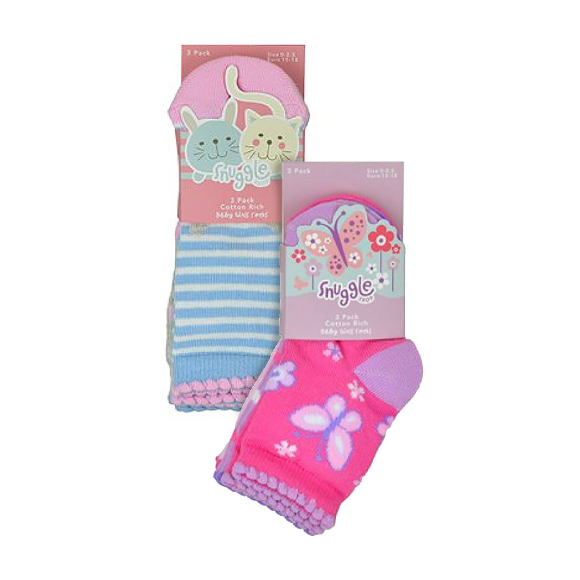 6 Pack Baby Girl Soft Cotton Butterfly & Animal Design Socks (3 Sizes)