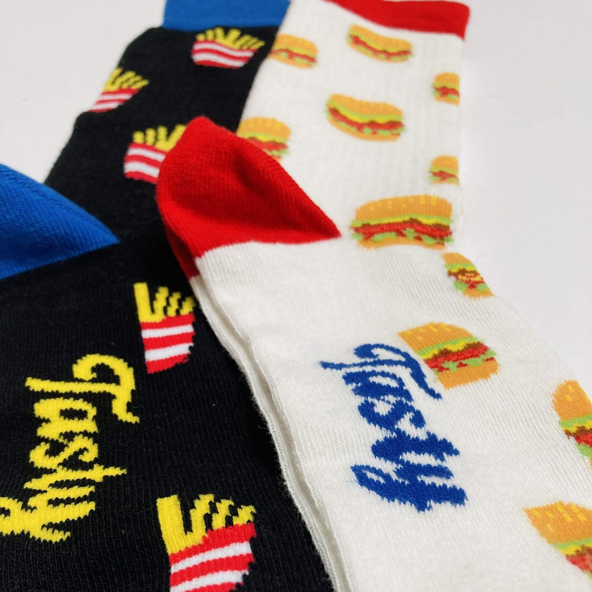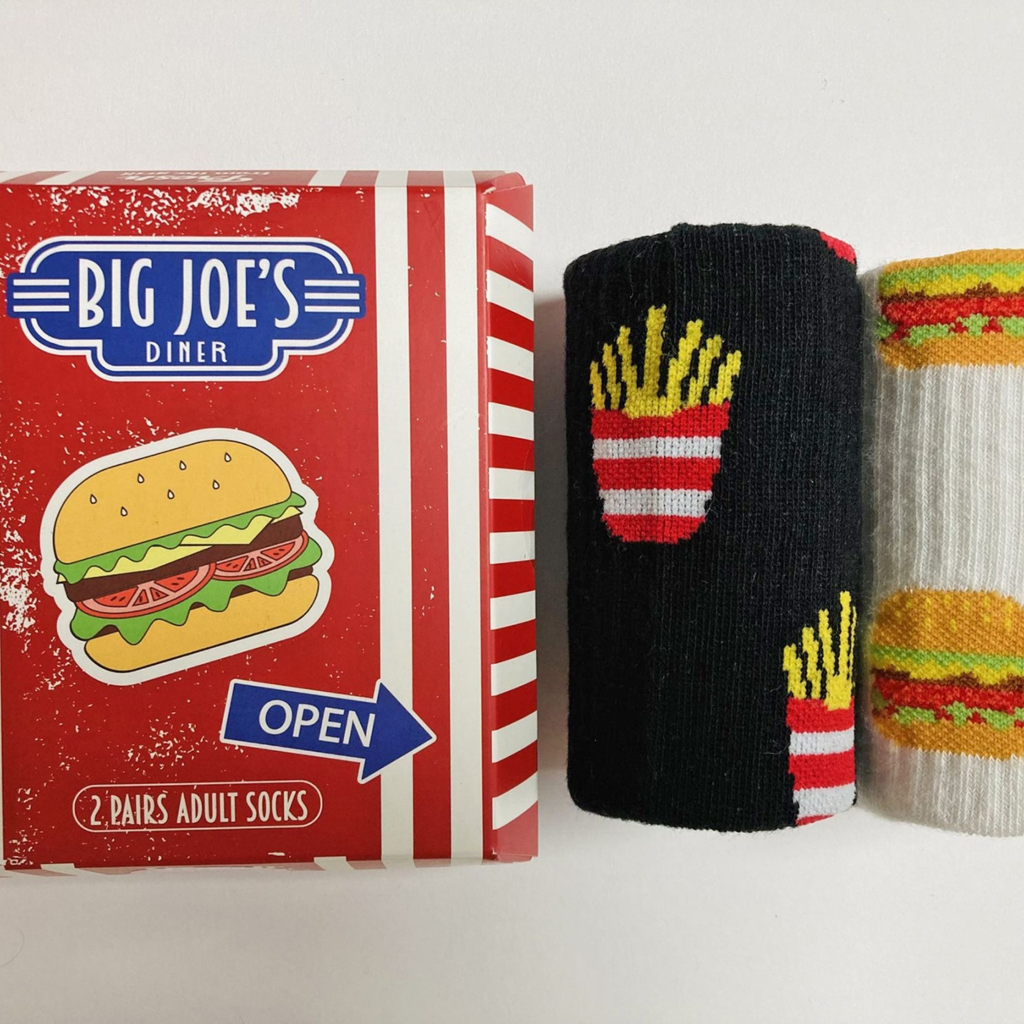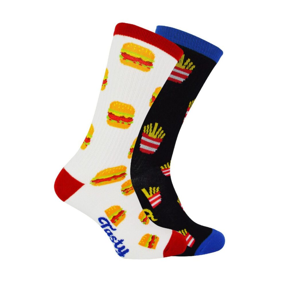 Bring on the burgers and fries!! For anyone that loves tucking in to A classic Burger & Fries and you want to show off that love or perhaps you know someone who would? Then these 2 Pack Burger Socks are perfect!