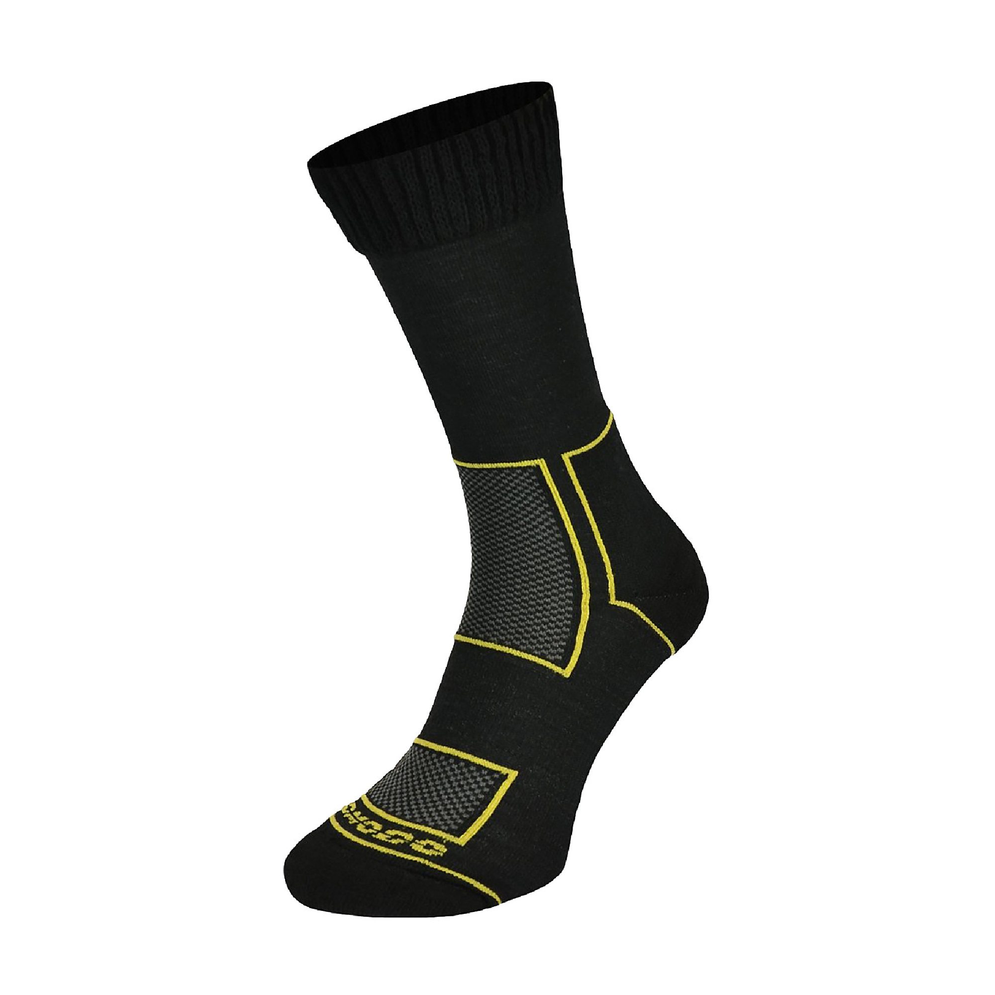 Wool is naturally breathable, so they’ll keep your feet cool and dry during even the hardest of working days. These socks are available in Black with yellow patterns. They also include a reinforced heel & toe design for additional durability and comfort.