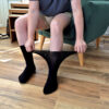 Our extra wide socks are perfect for those with fluid retention (or “oedema”, as it’s often called) who have a hard time finding socks that accommodate their swollen legs. These socks have been designed for those for whom maximum leg circumference is 30 inches. The special knitting technique used allows for the structure of the leg to be stretched much further.