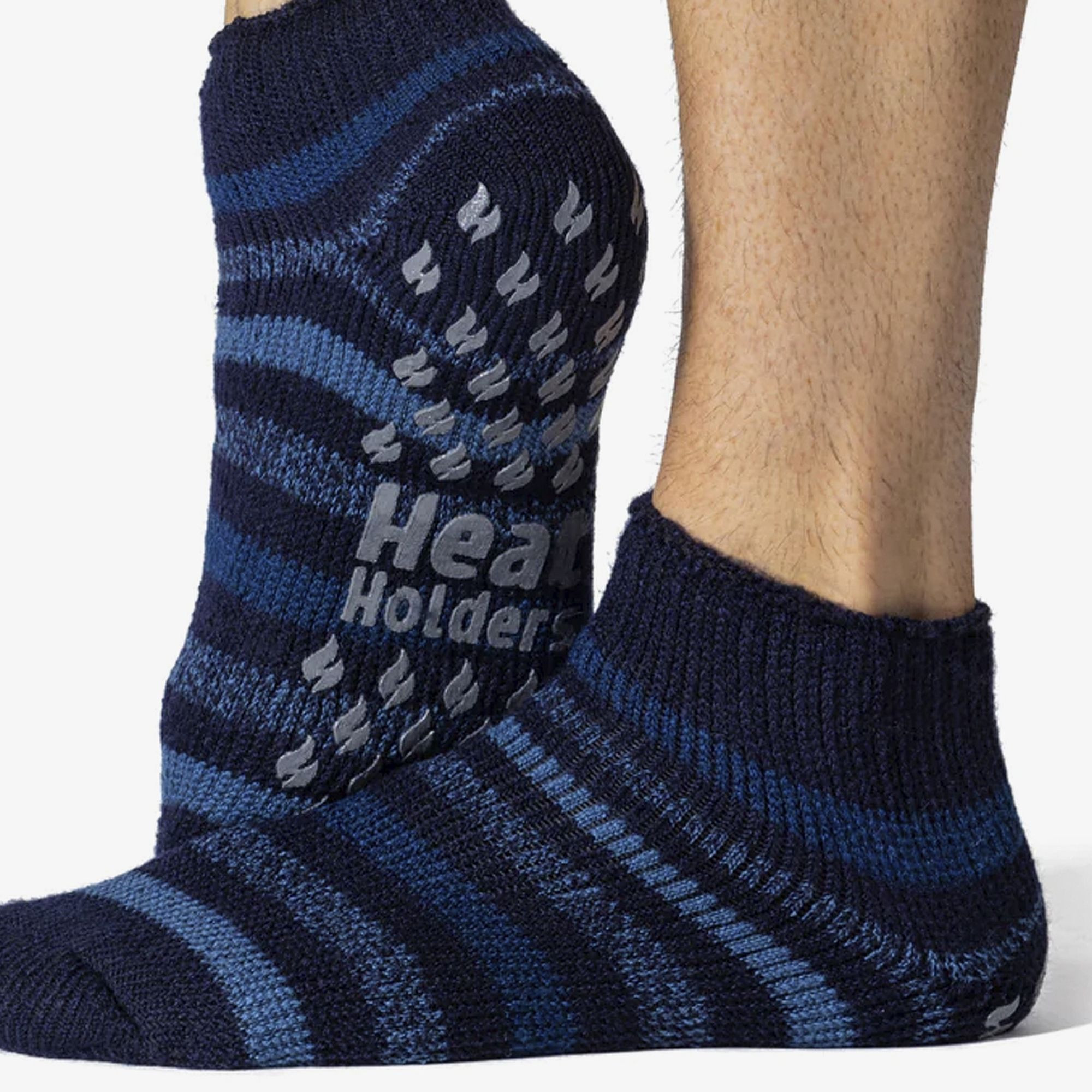 The same warmth and comfort as the original Heat Holders® Crew sock but in a shorter ankle length! Includes non-slip grippers on the bottom to provide better traction on indoor wood or tiled surfaces. Keep feet warm on the coldest of days and pull on this pair of slipper style ankle length Heat Holders® for men the warmest thermal sock.