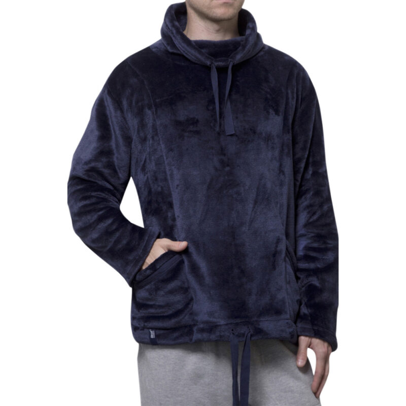 The whole jumper is made from the Heatweaver Fleece meaning this jumper is a velvet soft fur-like fleece for an incredibly soft and cosy touch. It is also on the inside making for a super warm and cosy jumper for those lazy days. It also has double drawstrings to the neck and waist – meaning you can adjust for a perfect snug fit and keep the cold drafts out. The funnel neck lets you snuggle down and relax keeping you warm from throughout. The snugover has two front pockets finished with matching ribbon for a stylish lounge look – while being practical at keeping hands warm as well.