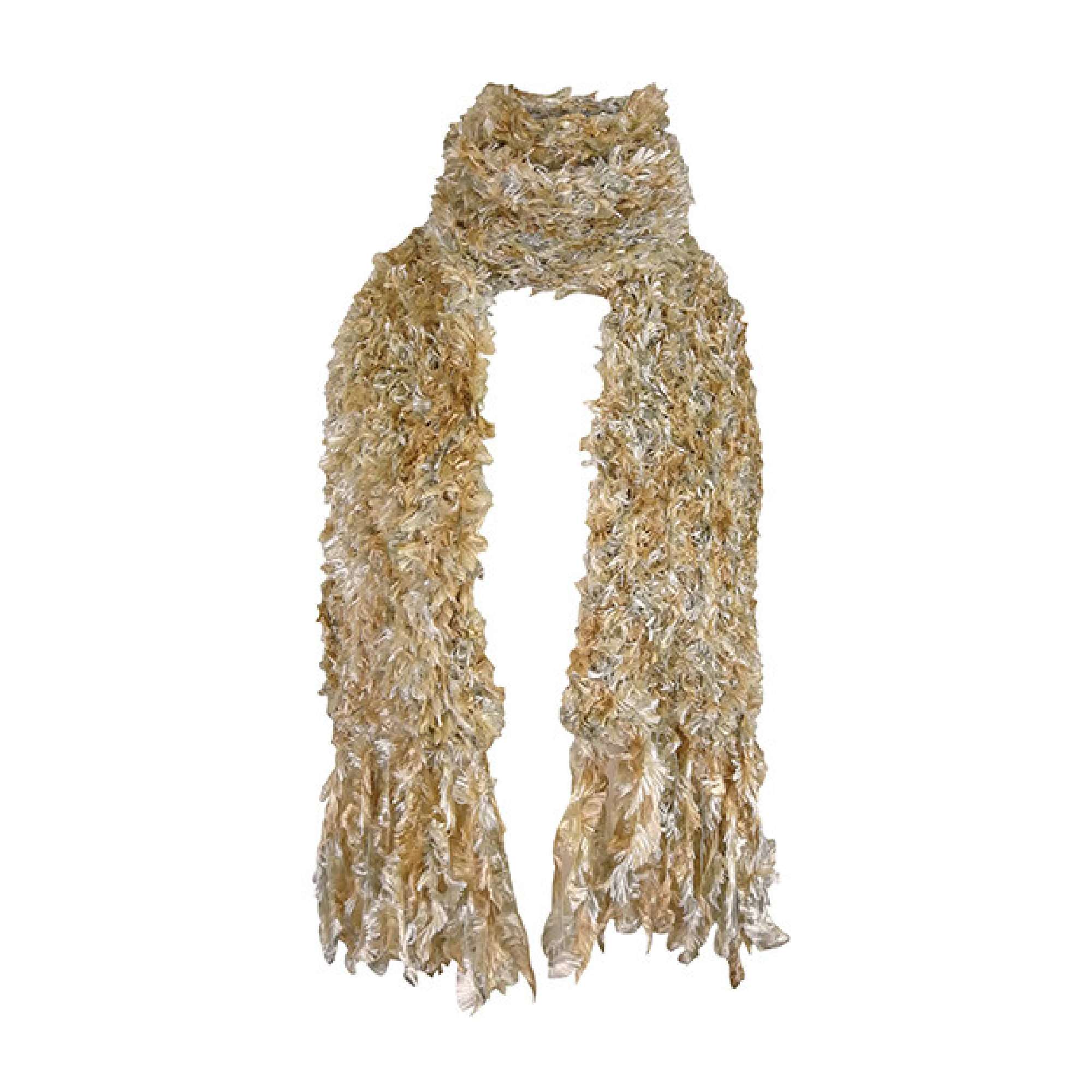 These scarves are made with a feather style creating a distinct look. They are knitted with lots of different colours, some have the same colour feathers throughout like the cream or purple styles. Some are mixed such as the cream and brown style. In total there are 7 fashionable colours to choose between. They are an ideal gift or a great stocking filler for Christmas time.