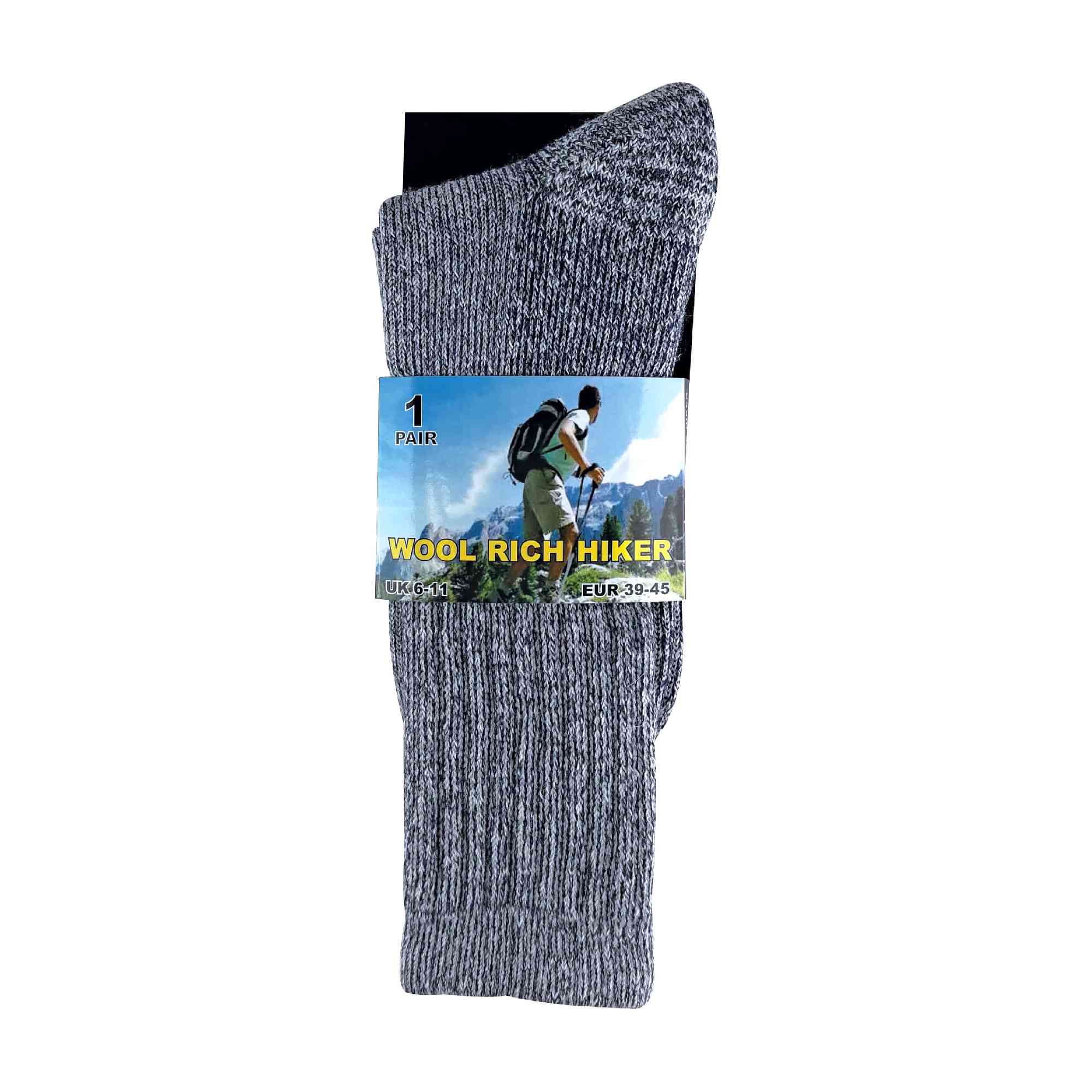 2 Pack Mens Cushioned Heel & Toe Thermal Wool Hiking Socks