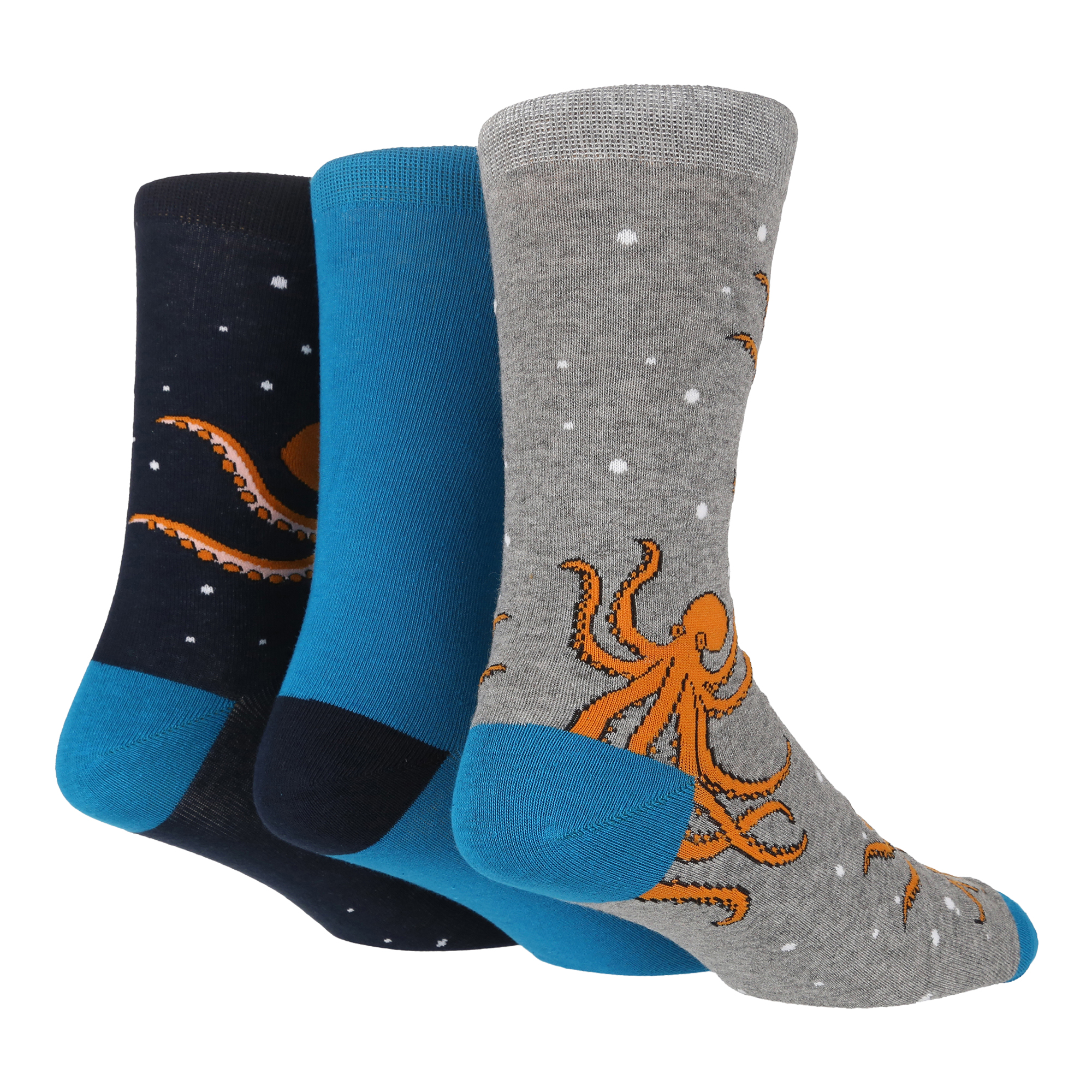 3 Pack Mens Novelty Colourful Octopus Cotton Socks