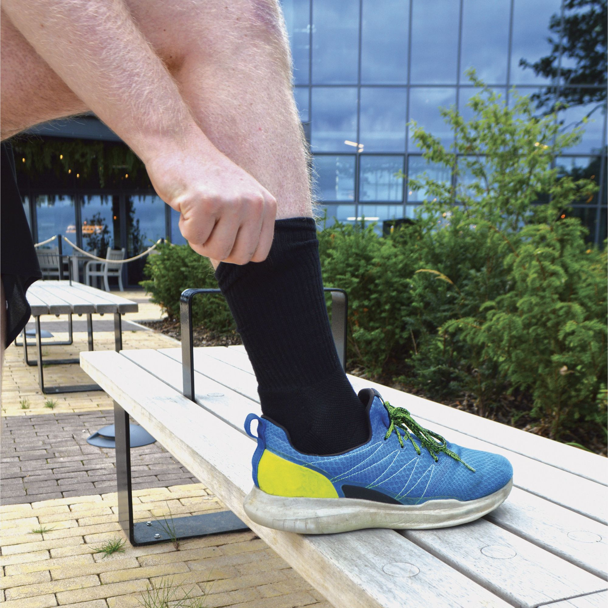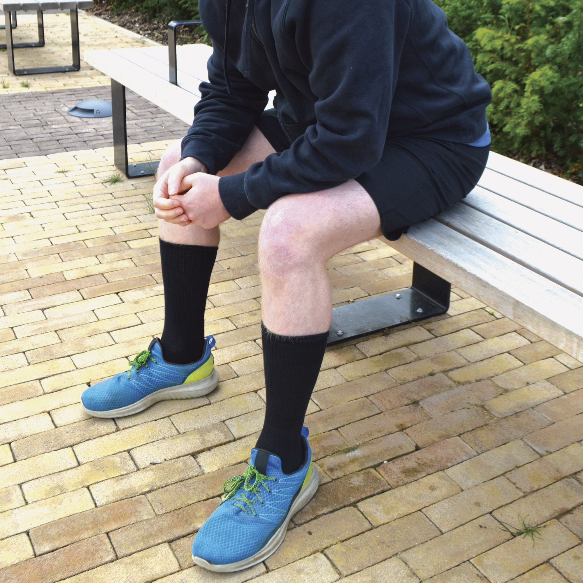 Bamboo is super soft and naturally moisture wicking, transporting moisture away from their skin and reduces the amount of sweat their feet produces during exercise. A mesh panelling knitted into the sport socks (on the top of the foot) also reduces moisture build up. This also reduces the chance of blisters developing on their feet.