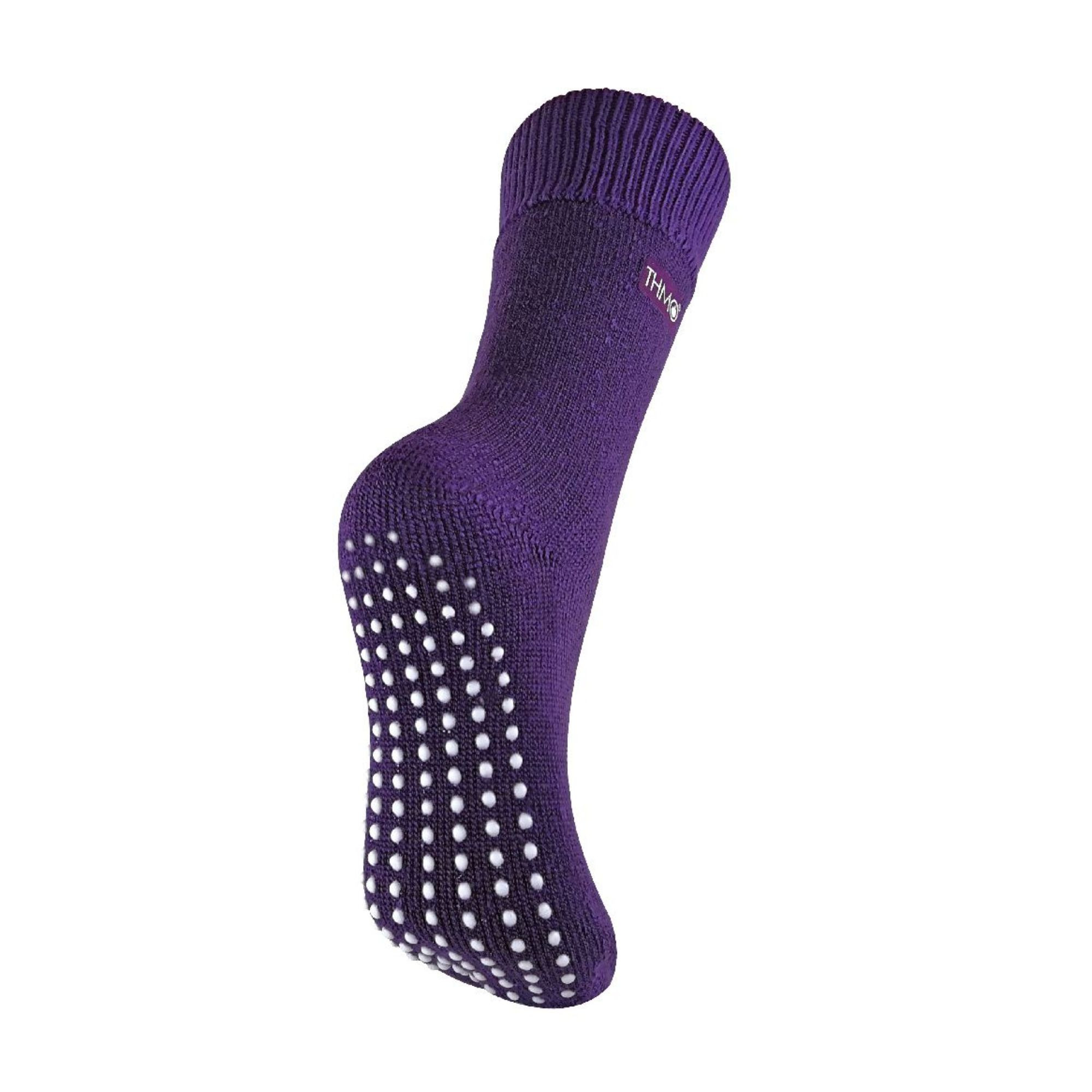 THMO thermal slipper socks have been made with a heavy bulk acrylic yarn with extreme thermal qualities. These socks have been double brushed on the inside to maximise warmth by trapping warm air and keeping it close to your feet. This brushing also softens the inside of the sock making it a great choice for indoor relaxing as well as a sock for outdoor activities.