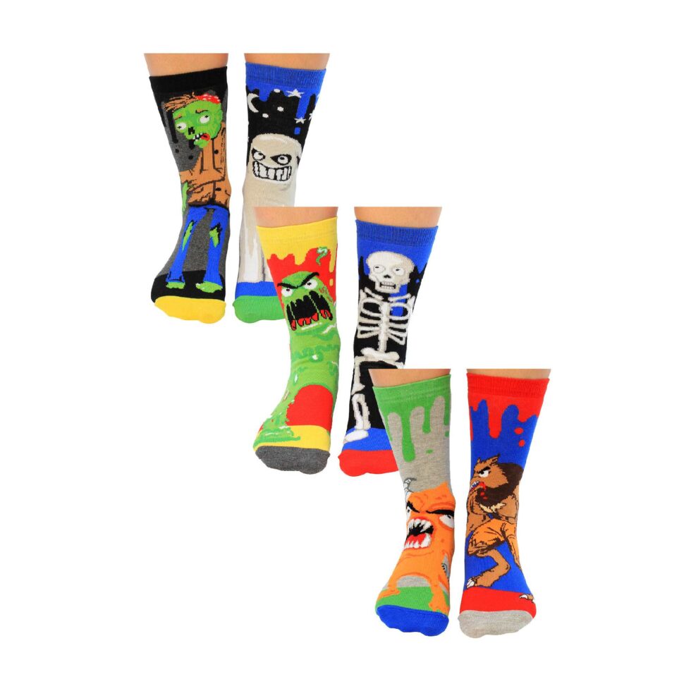 Boys 6 Pack Zombie Novelty Odd Socks In Gift Box