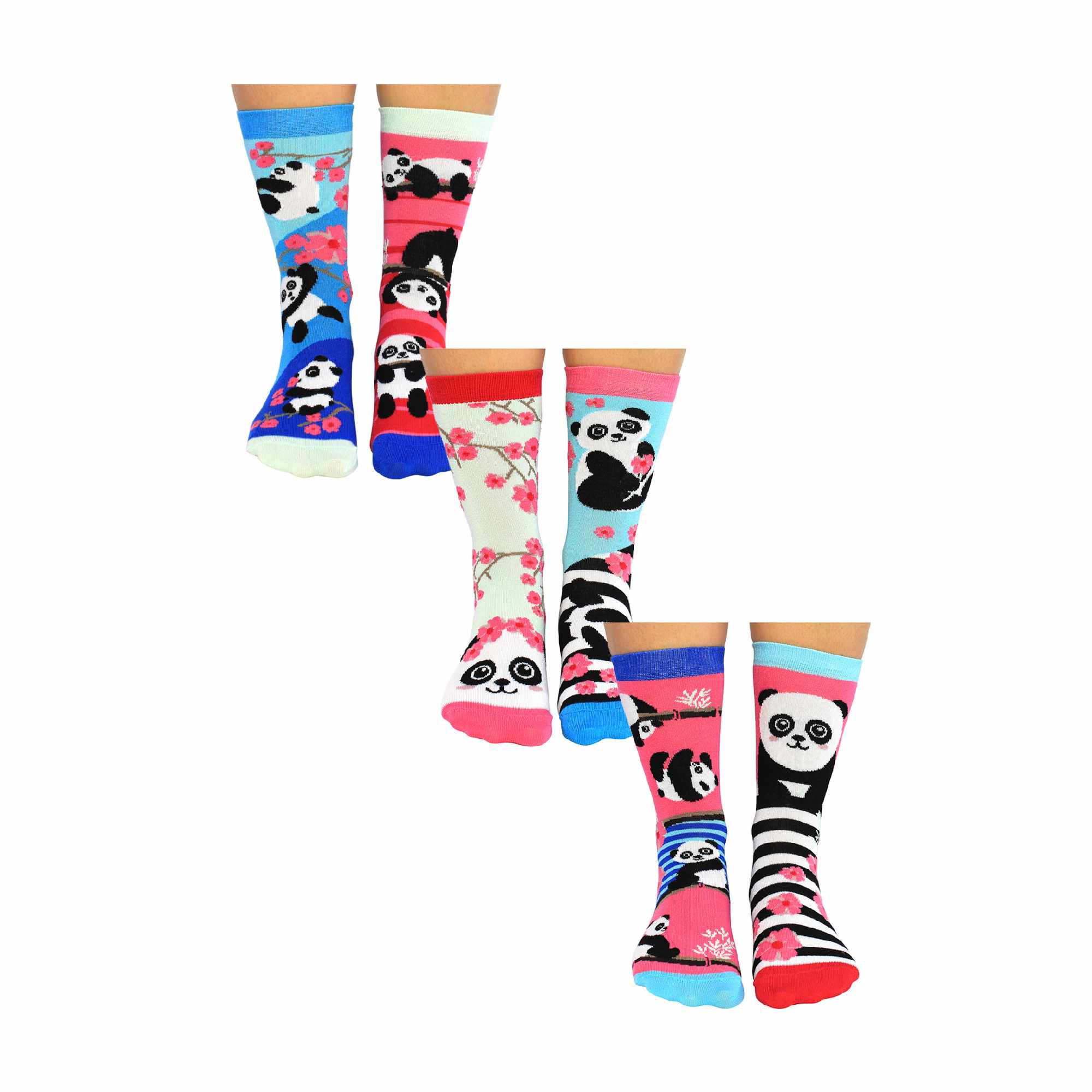 6 Pack Ladies Bamboo Panda Design Odd Socks in Gift Box